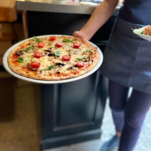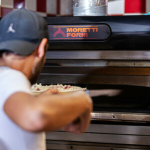 Nous préparons notre pâte tous les matins à base de farine italienne Stagioni (et d’autres ingrédients secrets) ce qui permet à la cuisson sur pierre, dans nos fours Moretti Forni, d’obtenir une pâte aérée et délicieusement croustillante.
